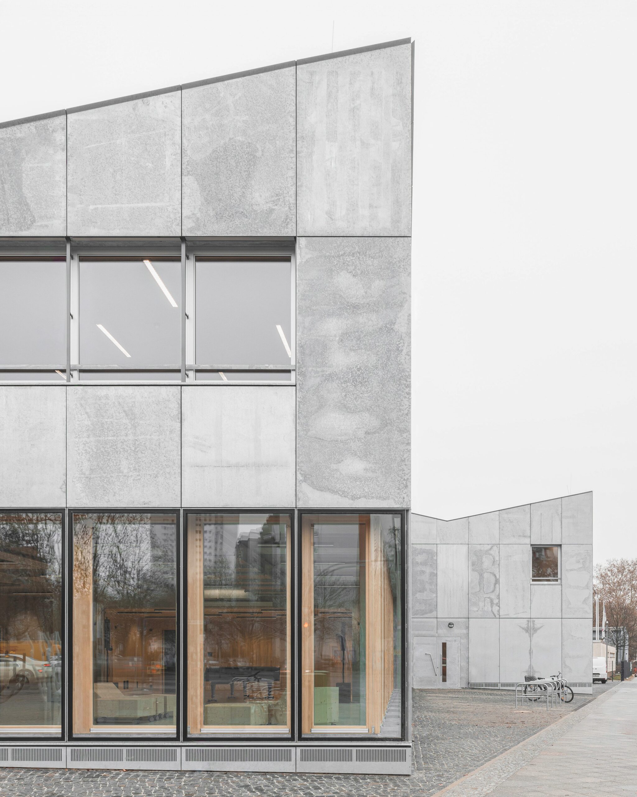 Material authenticity and longevity take centre stage. The architects chose galvanized steel for its robustness and reflective qualities — a material that ages gracefully, requires minimal maintenance, and lend the building a tactile honesty.