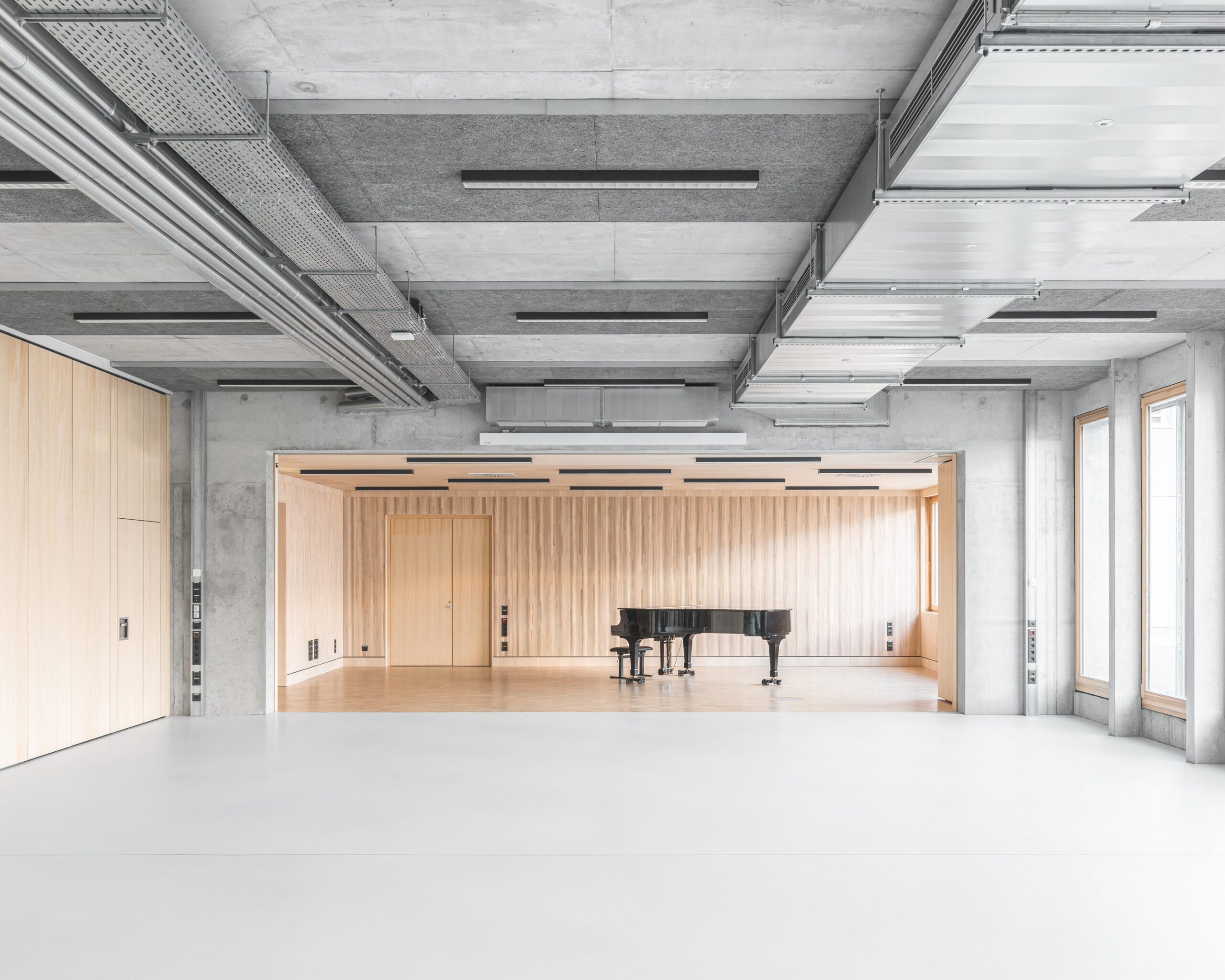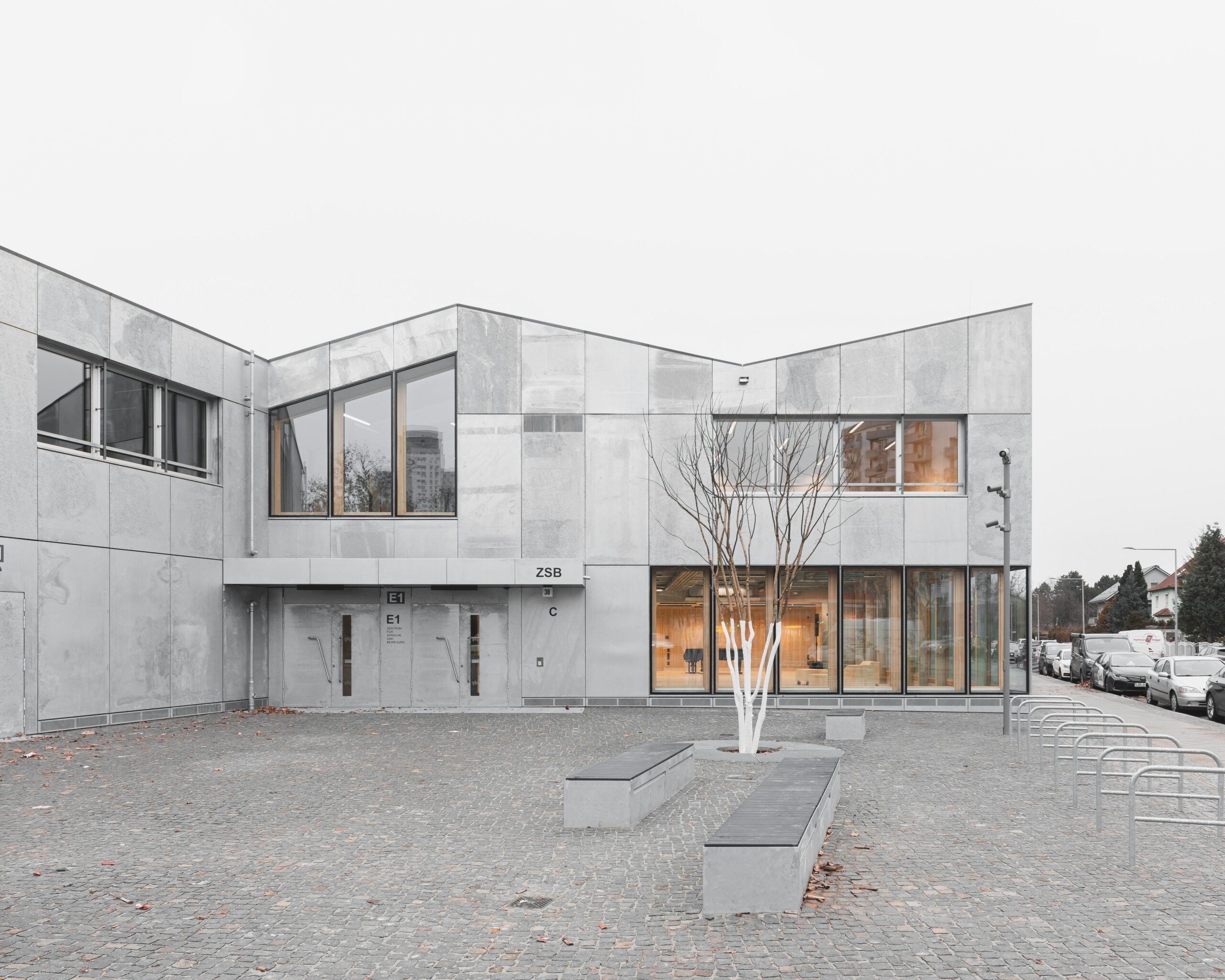 Inside, the tone softens: exposed concrete, linoleum flooring, and large wooden doors create calm, human-scaled spaces that balance openness with intimacy. This equilibrium between durability and warmth earned the ZSB recognition at the 2025 German Galvanizing Awards, where the jury praised its clarity, coherence, and sensitivity to context.
