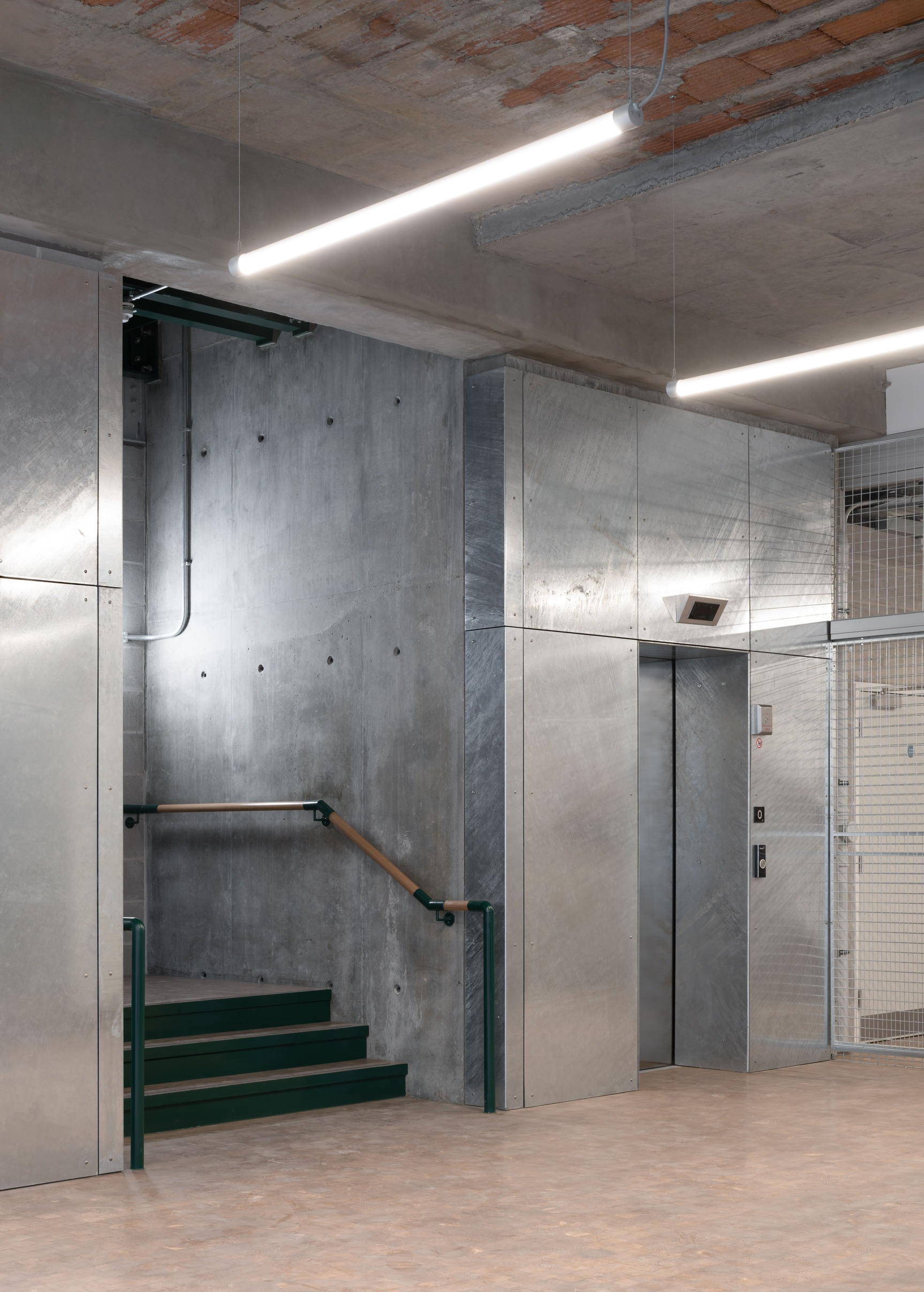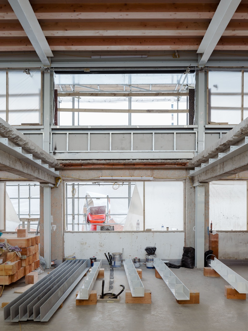 At the core of this project is a deep retrofit that honours the original 1970s structure, opting for material conservation over complete erasure. This approach not only preserved the entire concrete frame and foundations but also seamlessly integrated a new lightweight extension. Composed of galvanized steel and timber, this addition mirrors the building’s original materials, helping to minimize carbon footprint while doubling its size.