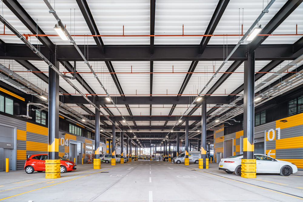 Crucially, a helical van ramp gives direct vehicle access to the upper levels, allowing businesses to load and service from their own front doors – even when those doors sit two storeys above ground. A central service yard is held between two deep wings of accommodation, with generous spans, clear volumes and an efficient steel frame providing a robust, loose-fit chassis designed to work hard for more than a century.